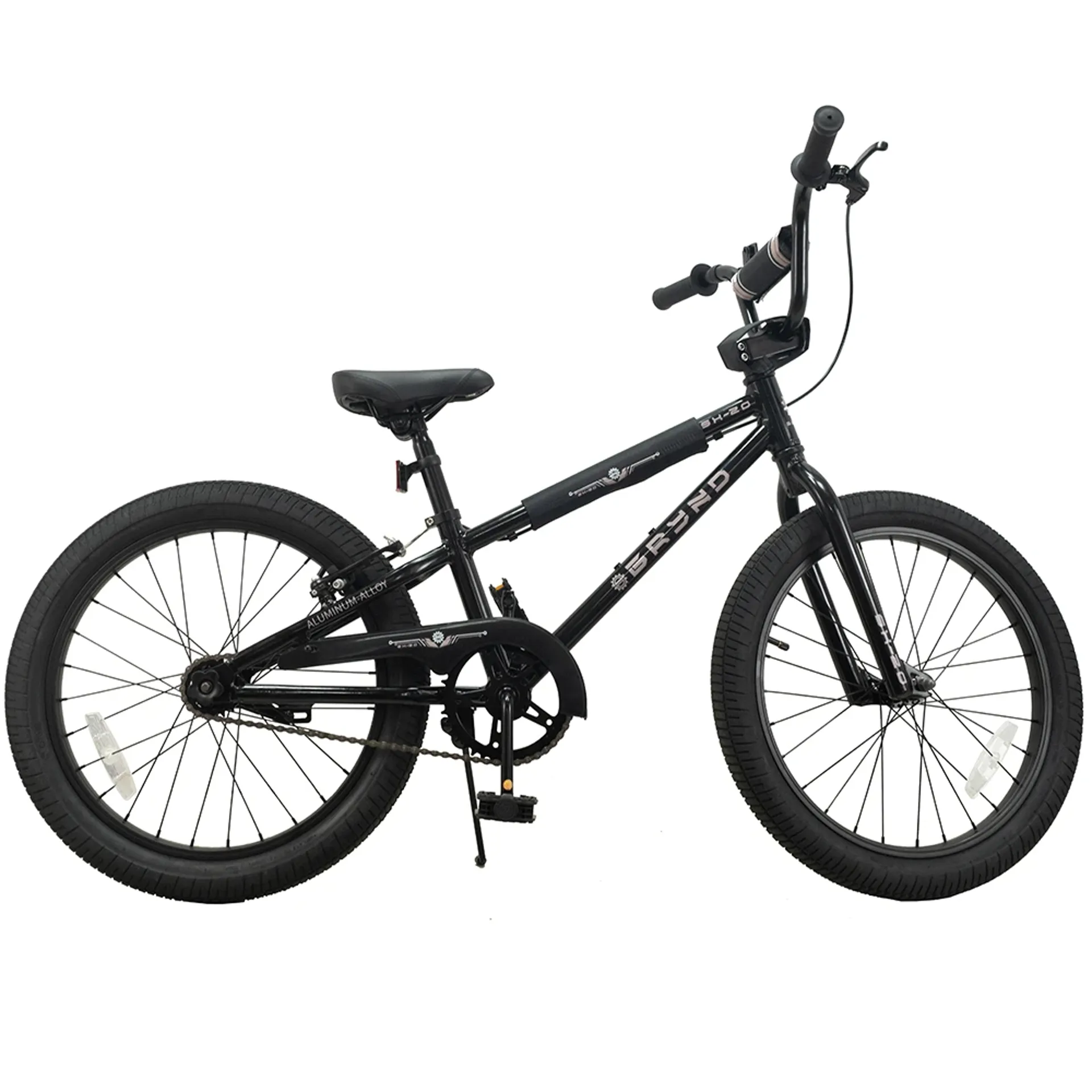 This bike is built with a 20-inch aluminum alloy frame and fork, ensuring durability and ease of handling for young riders. Safety is enhanced with included top tube, stem, and handlebar pads, as well as reflectors.